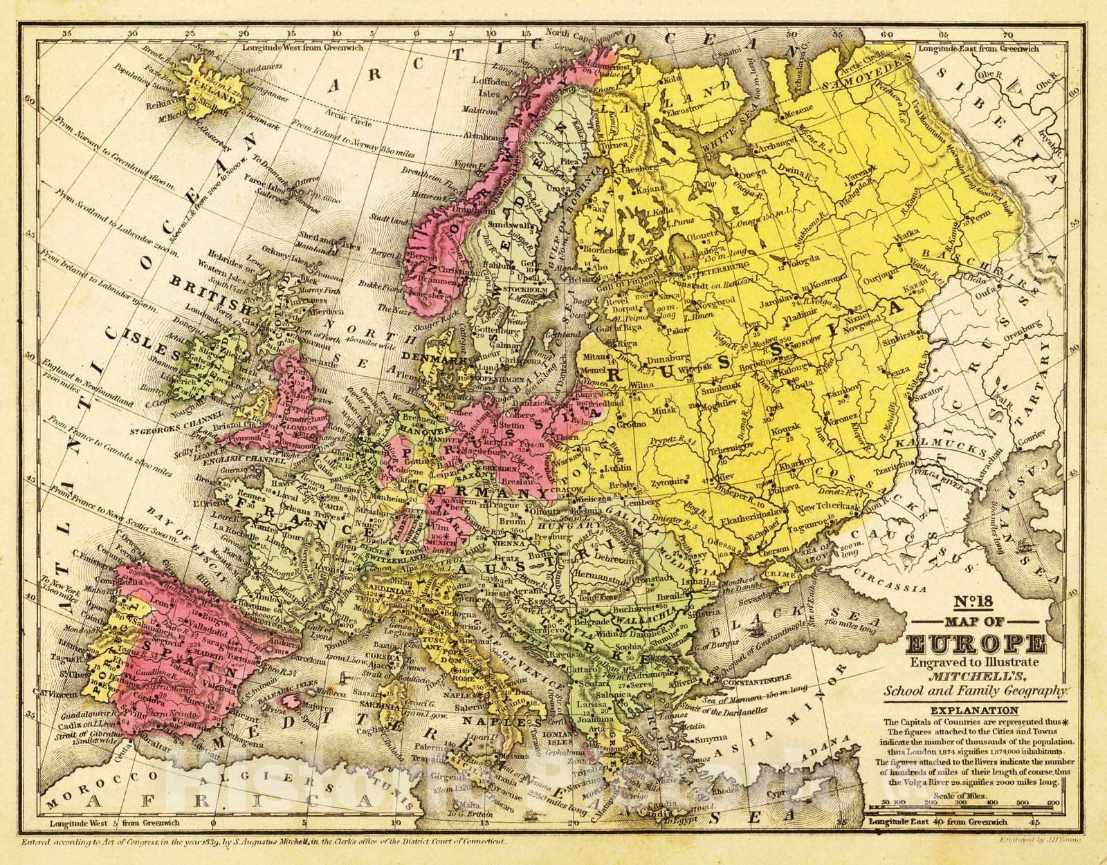 Historic Map : School Atlas - 1847 Europe. - Vintage Wall Art