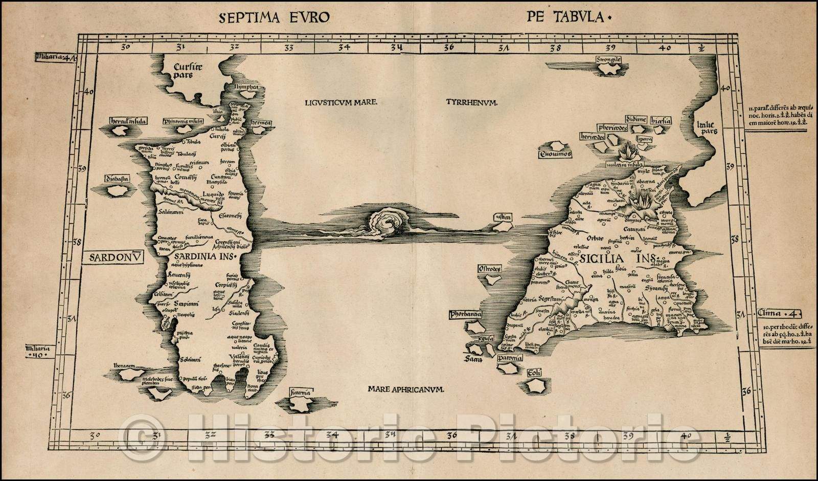 Historic Map - Septima Europe Tabula [Sicily & Sardinia]/The seventh Europe Map [Sicily & Sardinia], 1513, Martin Waldseem?ller - Vintage Wall Art