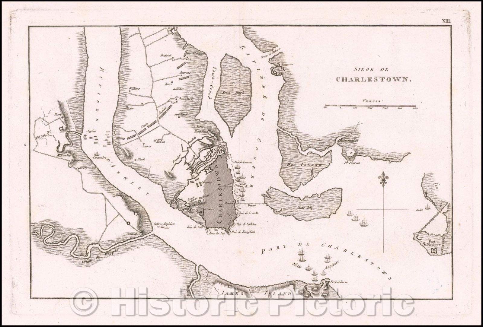 Historic Map - Siege de Charlestown/The Siege of Charleston, 1807, John Marshall - Vintage Wall Art