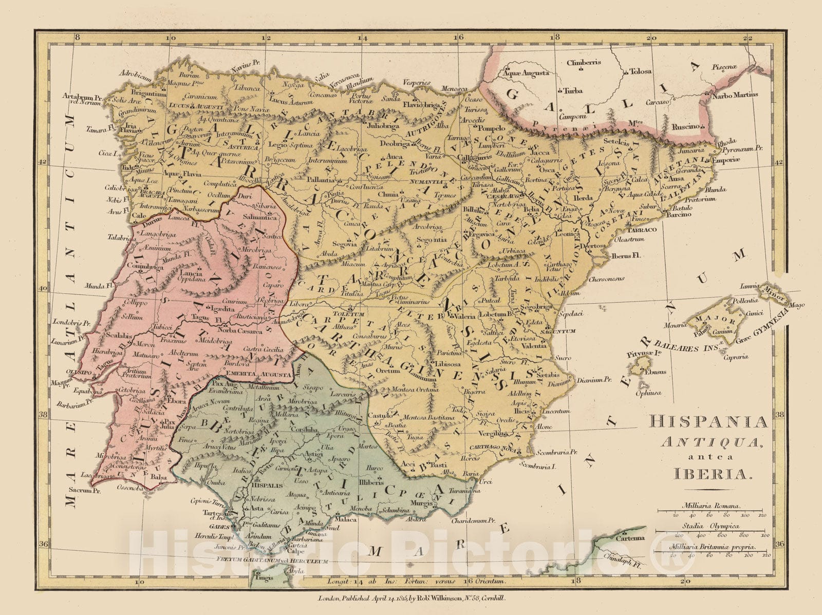 Spain; Portugal, Iberian Peninsula 1815 Hispania Antiqua antea Iberia. , Vintage Wall Art