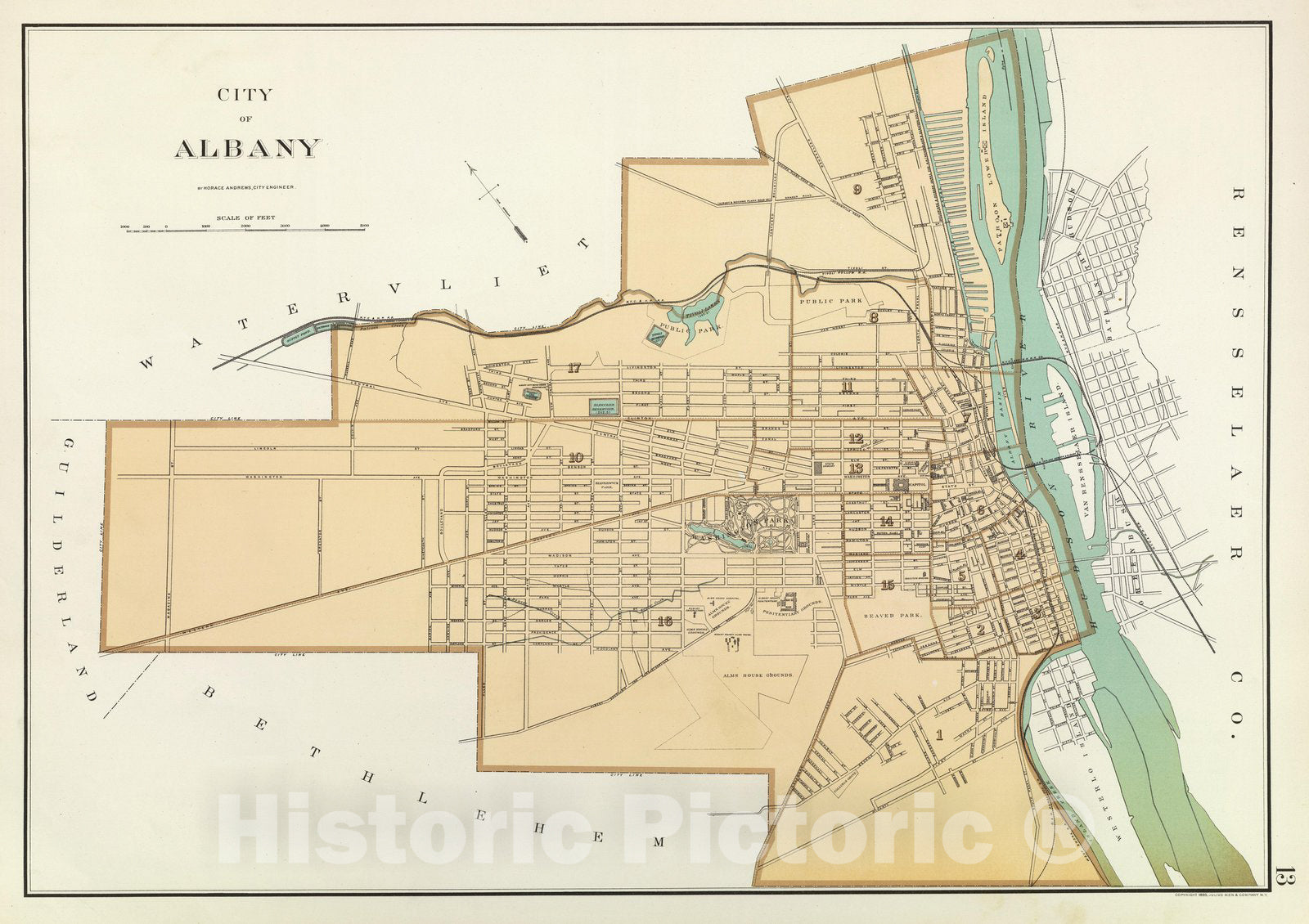 City of Albany by Horace Andrews, City Engineer. Copyright 1895, Julius Bien & Company, N.Y. | Atlas of the state of New York. Prepared under the direction of Joseph R. Bien, E.M., civil and topographical engineer from original surveys and various local surveys revised and corrected. Published by Julius Bien & Company, New York, 1895. | See note field above.