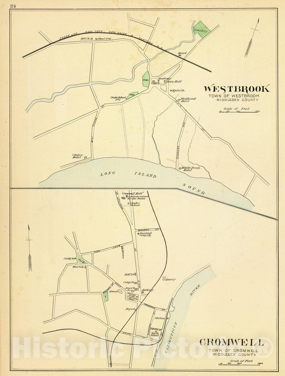 Historic Map : State Atlas Map, Westbrook, Cromwell. 1893 - Vintage Wall Art