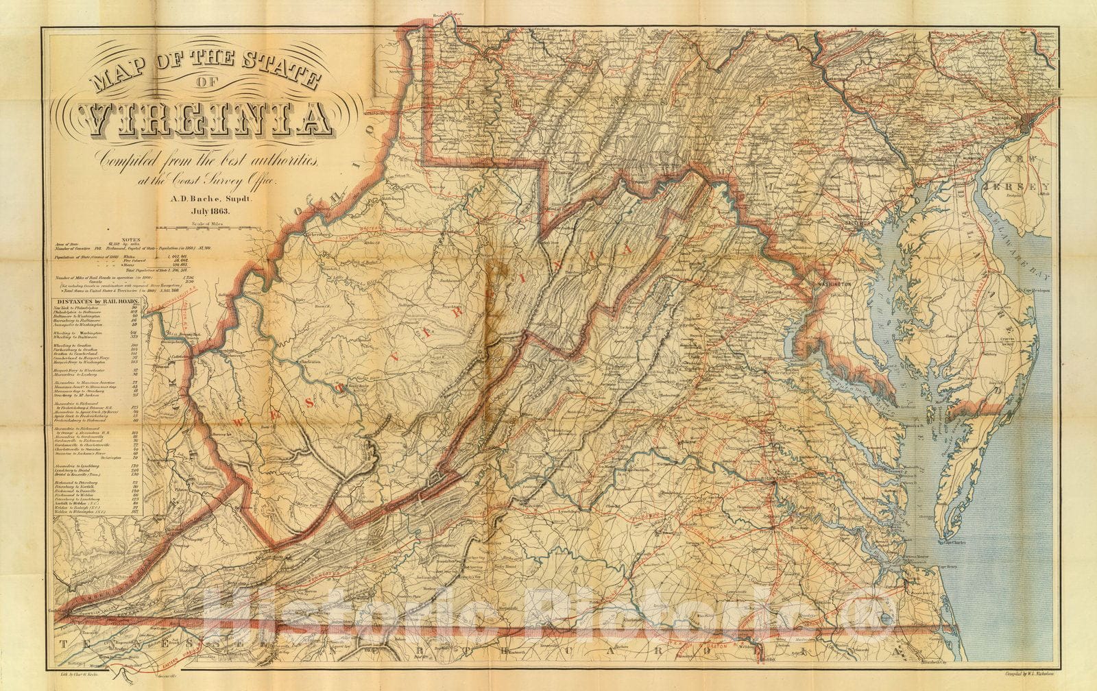 Historic Map : Map of the state of Virginia, 1863 - Vintage Wall Art