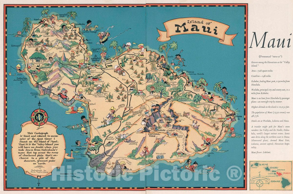 Historic Map : The Story of Hawaii. Maui, 1935 Guide Book - Vintage Wall Art