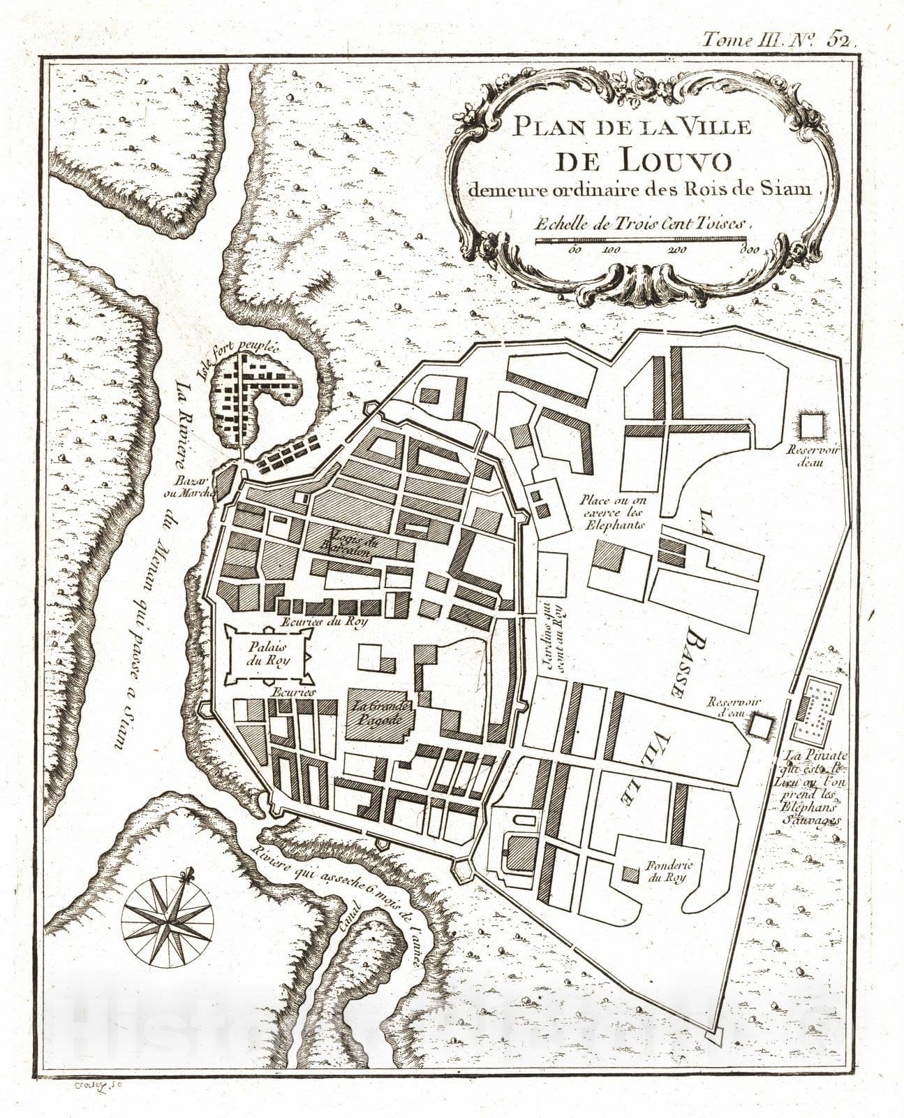 Historic Map : Thailand, 1764 Plan de la ville de Louvo, demeure ordinaire des rois de Siam , Vintage Wall Art