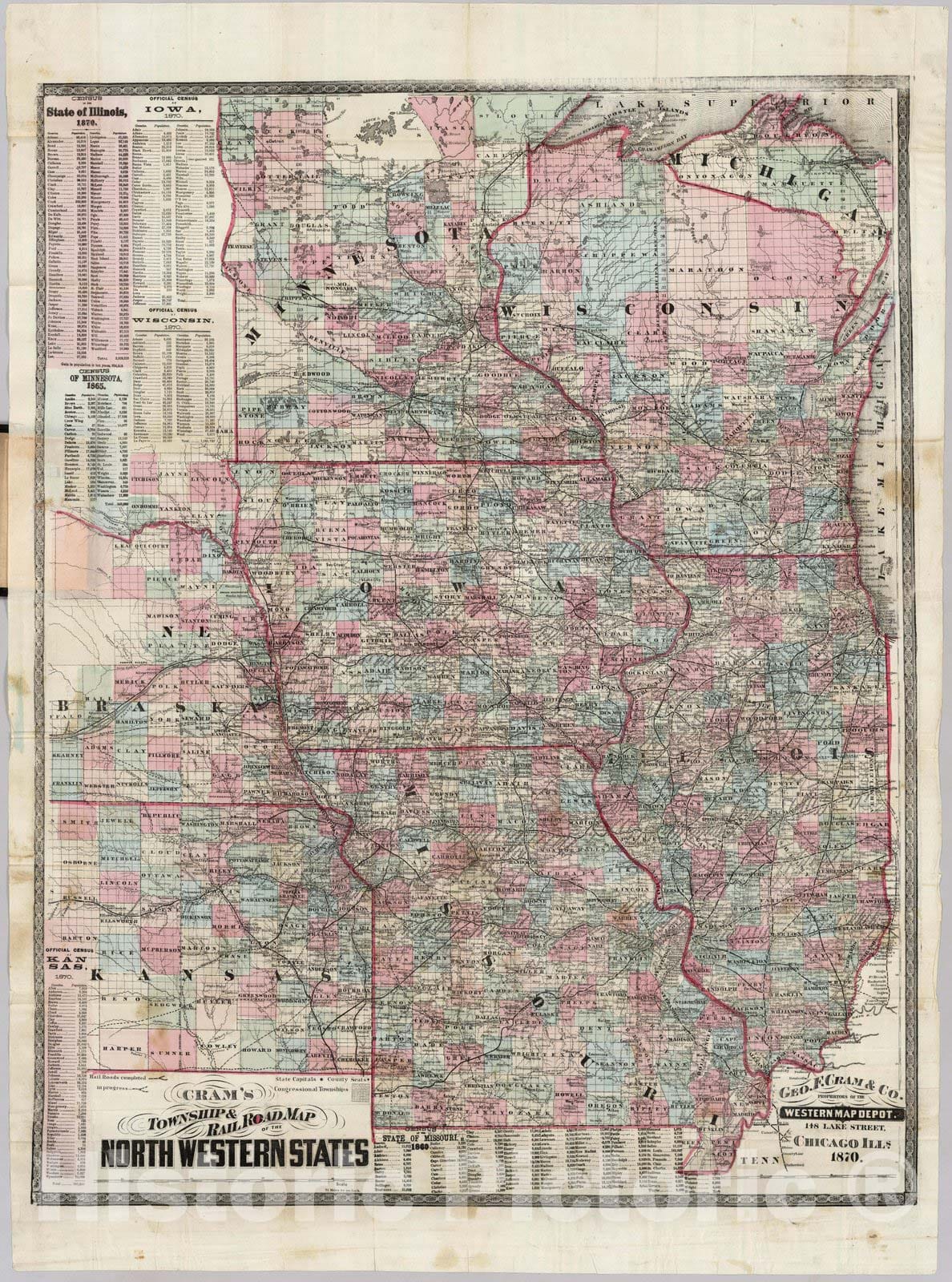 Cram's Township & Rail Road Map Of The North Western States. Geo. F. Cram & Co. ... Proprietors Of The Western Map Depot. 148 Lake Street, Chicago Ills. 1870. | Cram's Township & Rail Road Map Of The North Western States. Geo. F. Cram & Co. ... Proprietors Of The Western Map Depot. 148 Lake Street, Chicago Ills. 1870. | See note field above.
