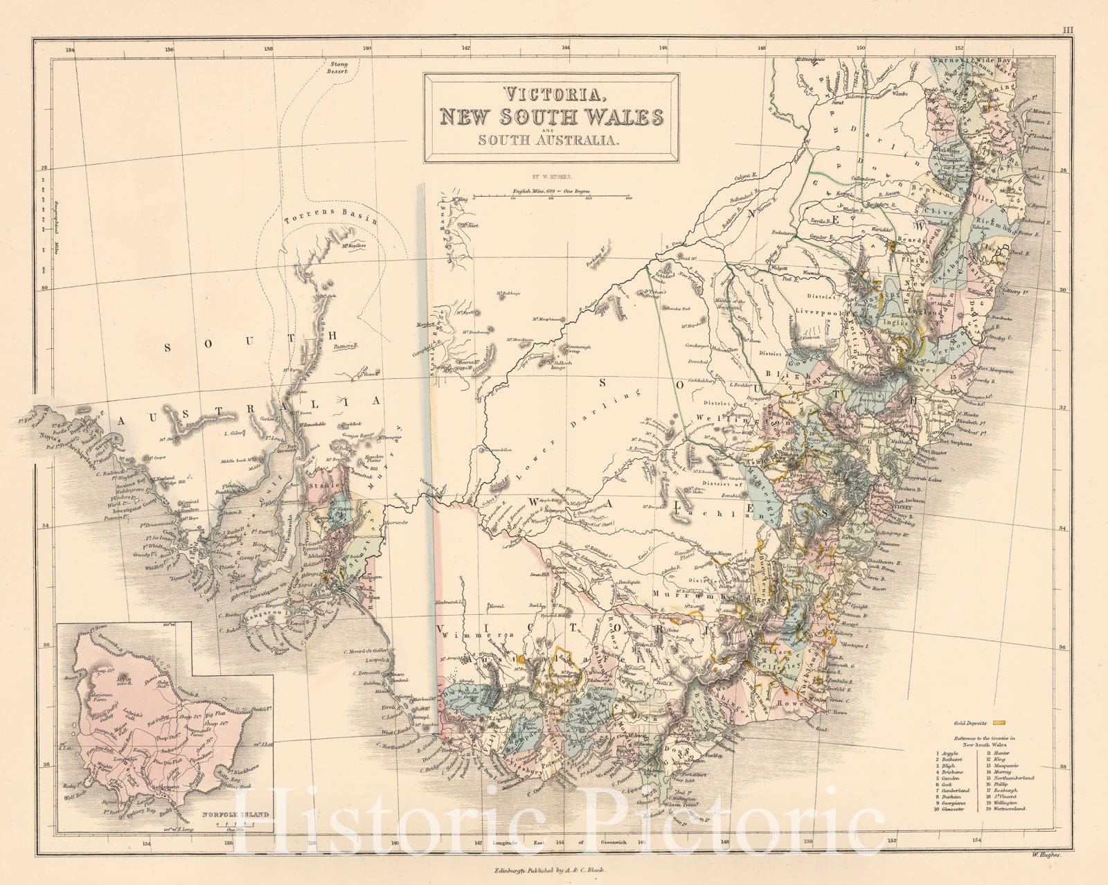 Historic Map : Victoria, New South Wales, South Australia, 1853, Vintage Wall Art