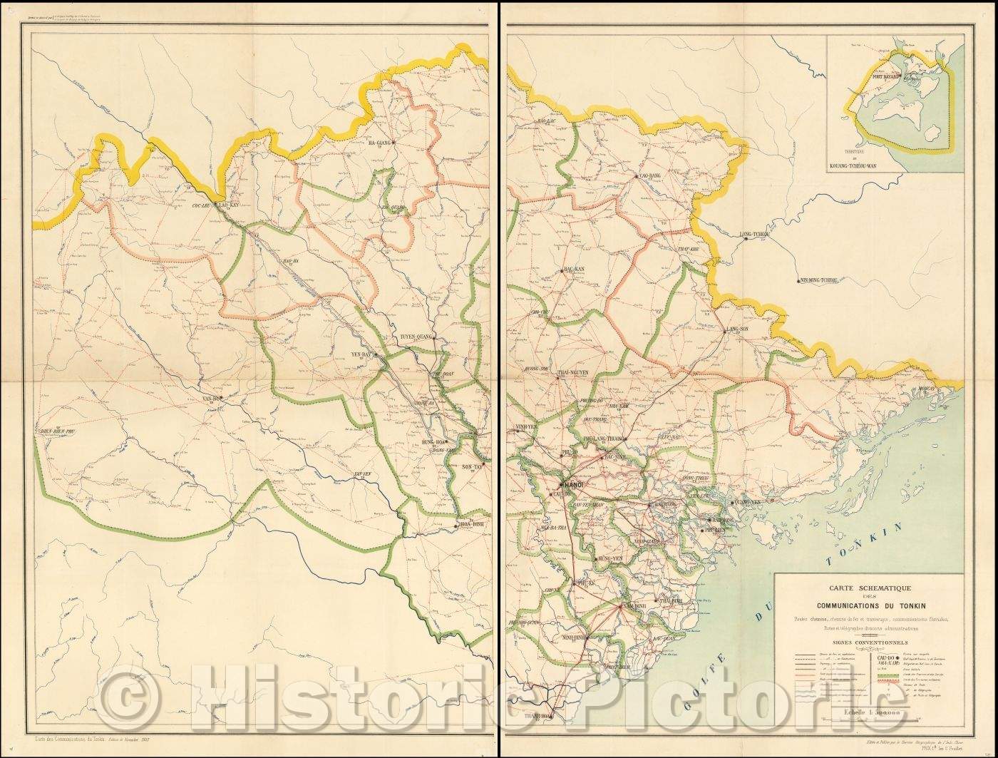 Historic Map - (Vietnam Post and Telegraph Map) Carte Schematique :: (Vietnam Post and Telegraph Map) Schematic of Tonkin Communications Roa, 1903 - Vintage Wall Art
