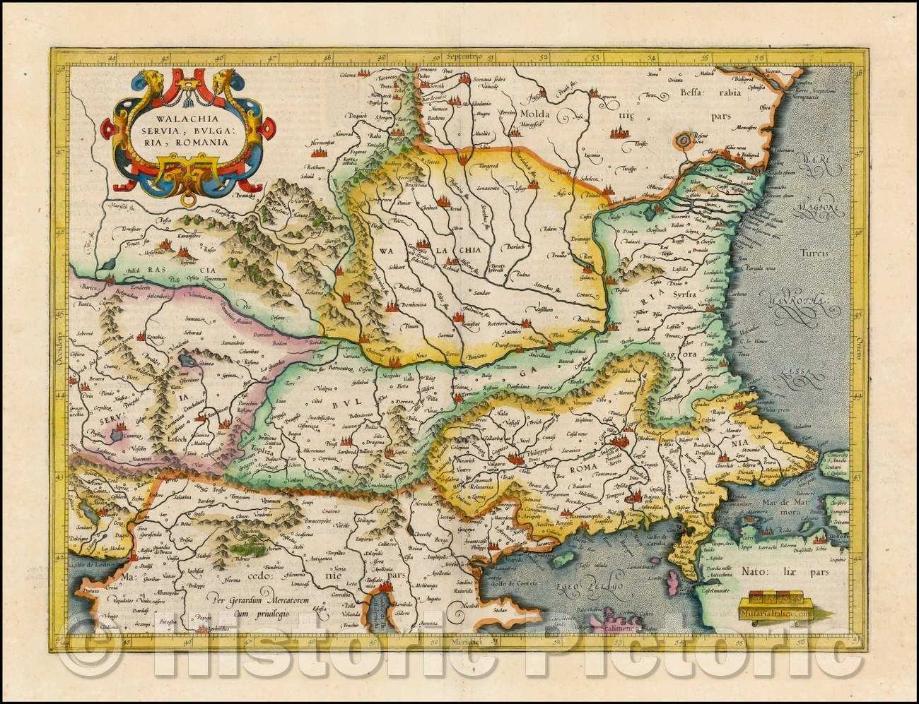 Historic Map - Walachia Servia, Bulgaria et R :: Example of Mercator's of the Region centered on the Lower Danube, Bulgaria, Romania, Serbia and Macedonia, 1619 - Vintage Wall Art