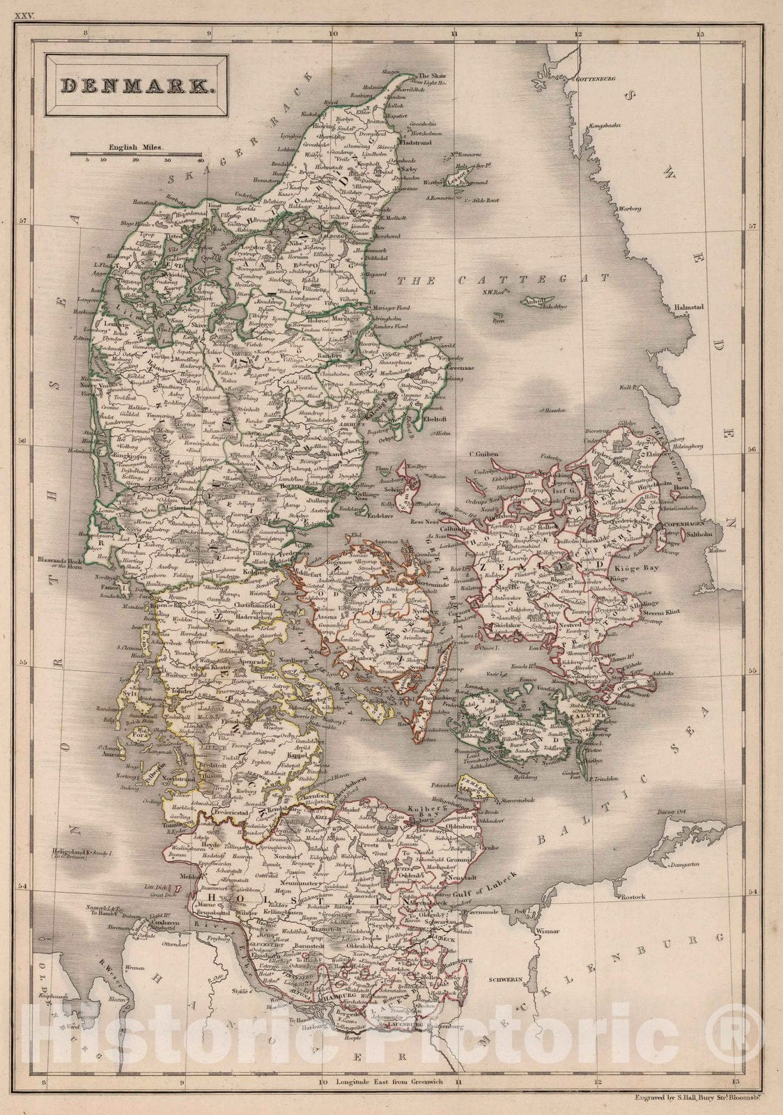 Historic Map : World Atlas Map, Denmark. 1841 - Vintage Wall Art