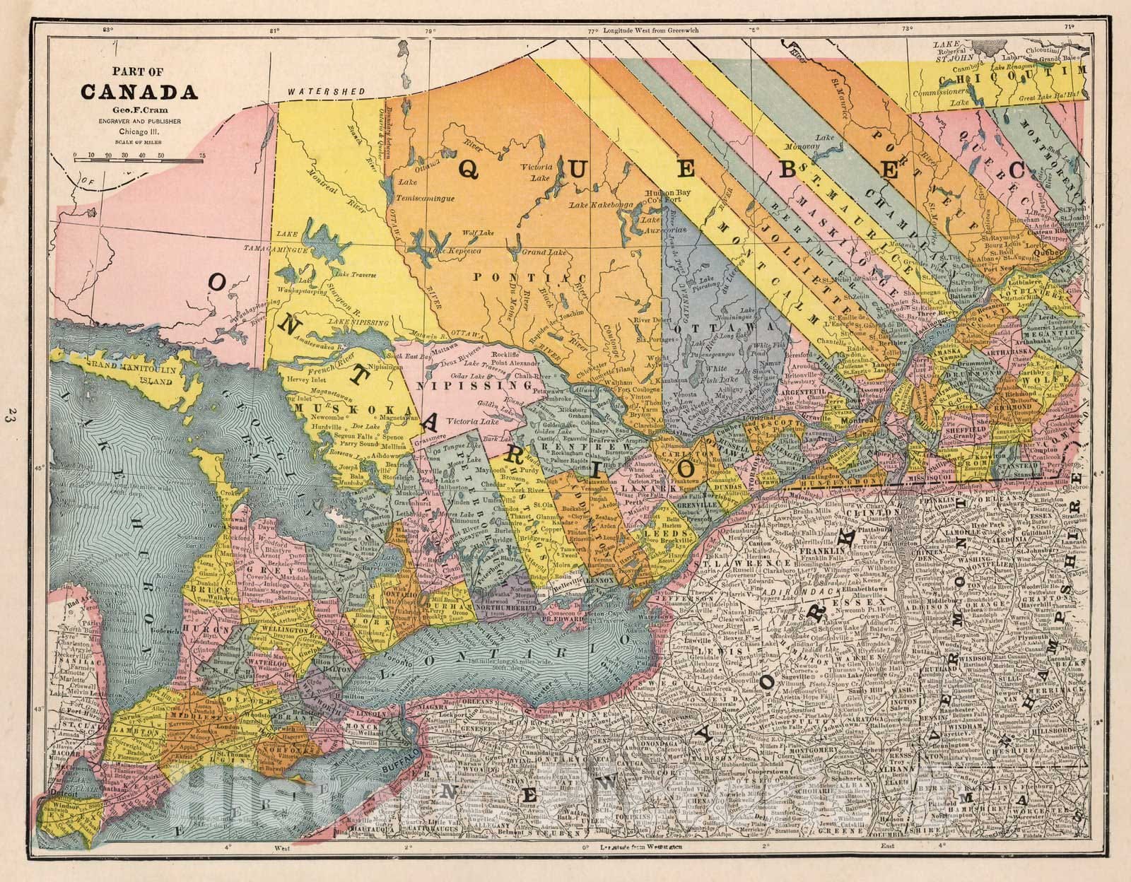 Historic Map : World Atlas Map, Eastern Canada. 1882 - Vintage Wall Art