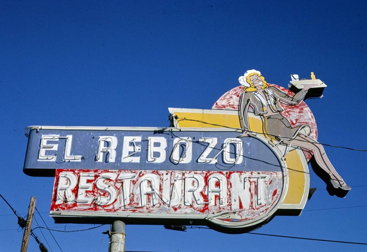 Historic Photo : 1991 El Rebozo Restaurant sign, Ukiah, California | Margolies | Roadside America Collection | Vintage Wall Art :