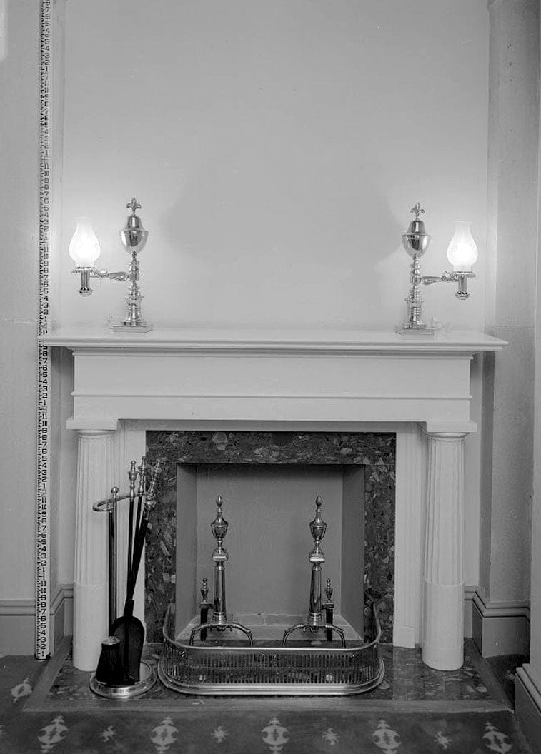 Detail view of fireplace on north wall behind bench, with scale - U.S. Capitol, Old Supreme Court Chamber, Intersection of North, South, & East Capitol Streets & Capitol Mall, Washington, District of Columbia, DC