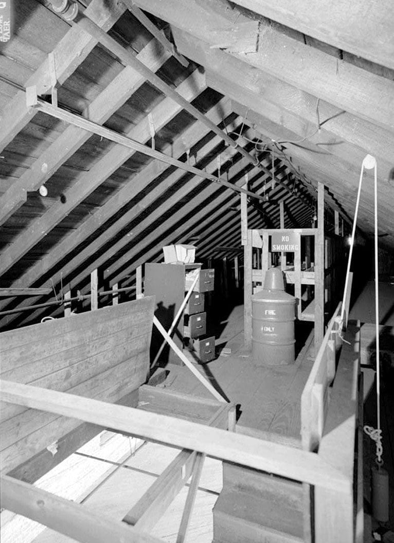 30. C. 1852 BUILDING, TRACK ABOVE OPENING TO ATTIC SPACE. - Continental Gin Company, Prattville, Autauga County, AL