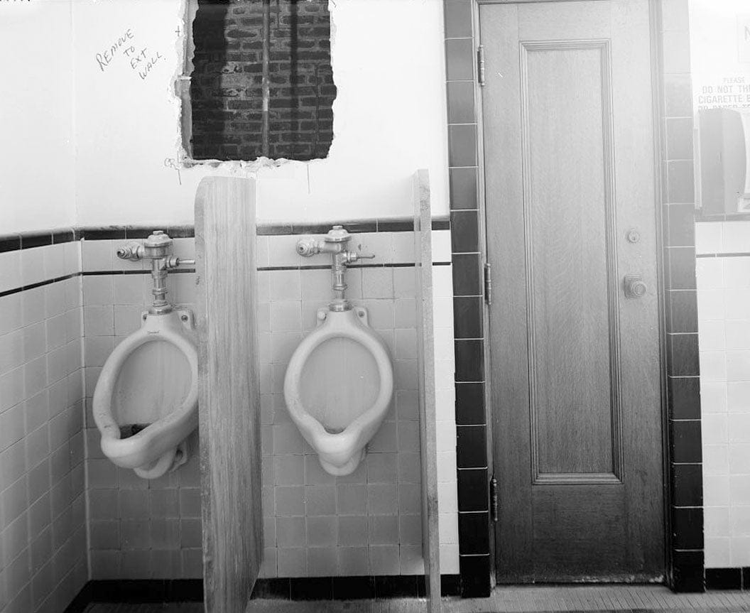 John Ash, AIA, Photographer August 1997. VIEW OF LOS ANGELES CITY HALL FIFTEENTH FLOOR MEN'S ROOM OFF ELEVATOR LOBBY, FACING EAST - Los Angeles City Hall, 200 North Spring Street, Los Angeles, Los Angeles County, CA