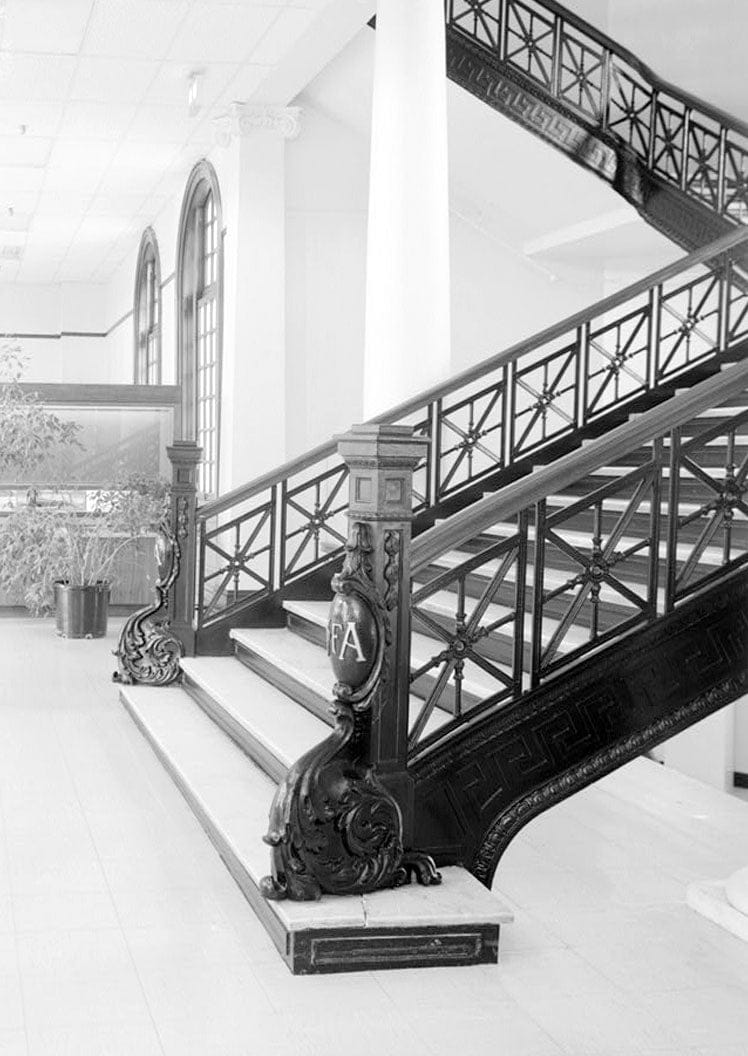12. INTERIOR VIEW, VIEW OF RAILING FROM GALLERY, LOOKING NORTHEAST - Smith Hall, Capstone Drive at Sixth Avenue, Tuscaloosa, Tuscaloosa County, AL