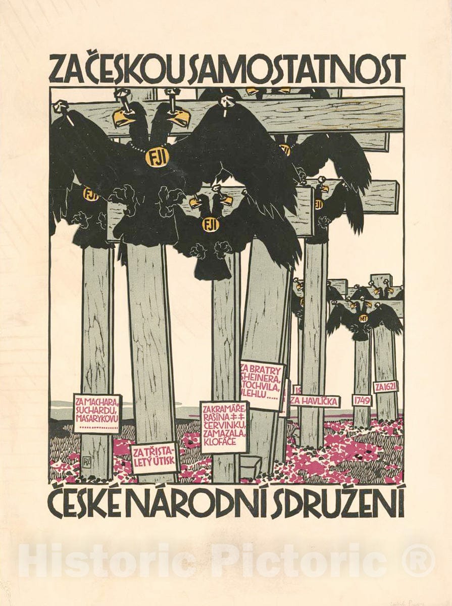 Vintage Poster - Za ceskou samostatnost, Ceske narodni sdruzeni - PV., Historic Wall Art