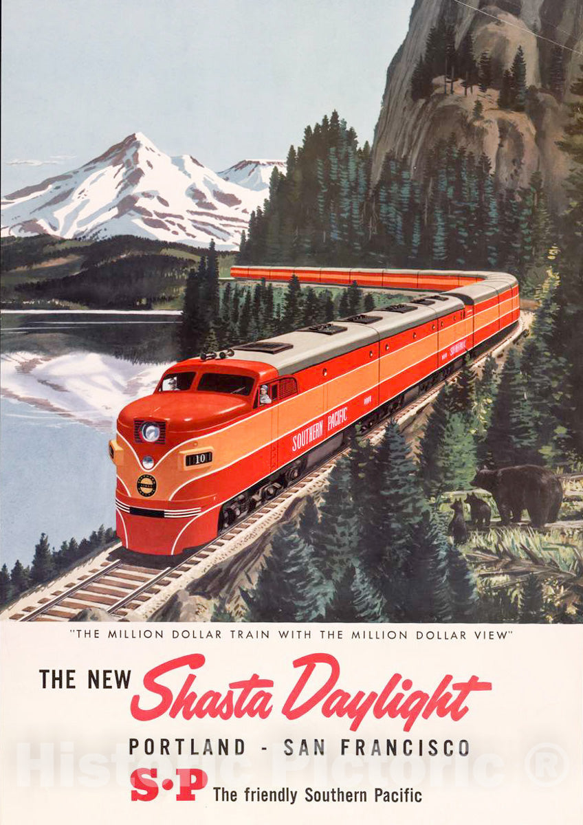 Vintage Poster - The New Shasta Daylight Portland - San Francisco., Historic Wall Art