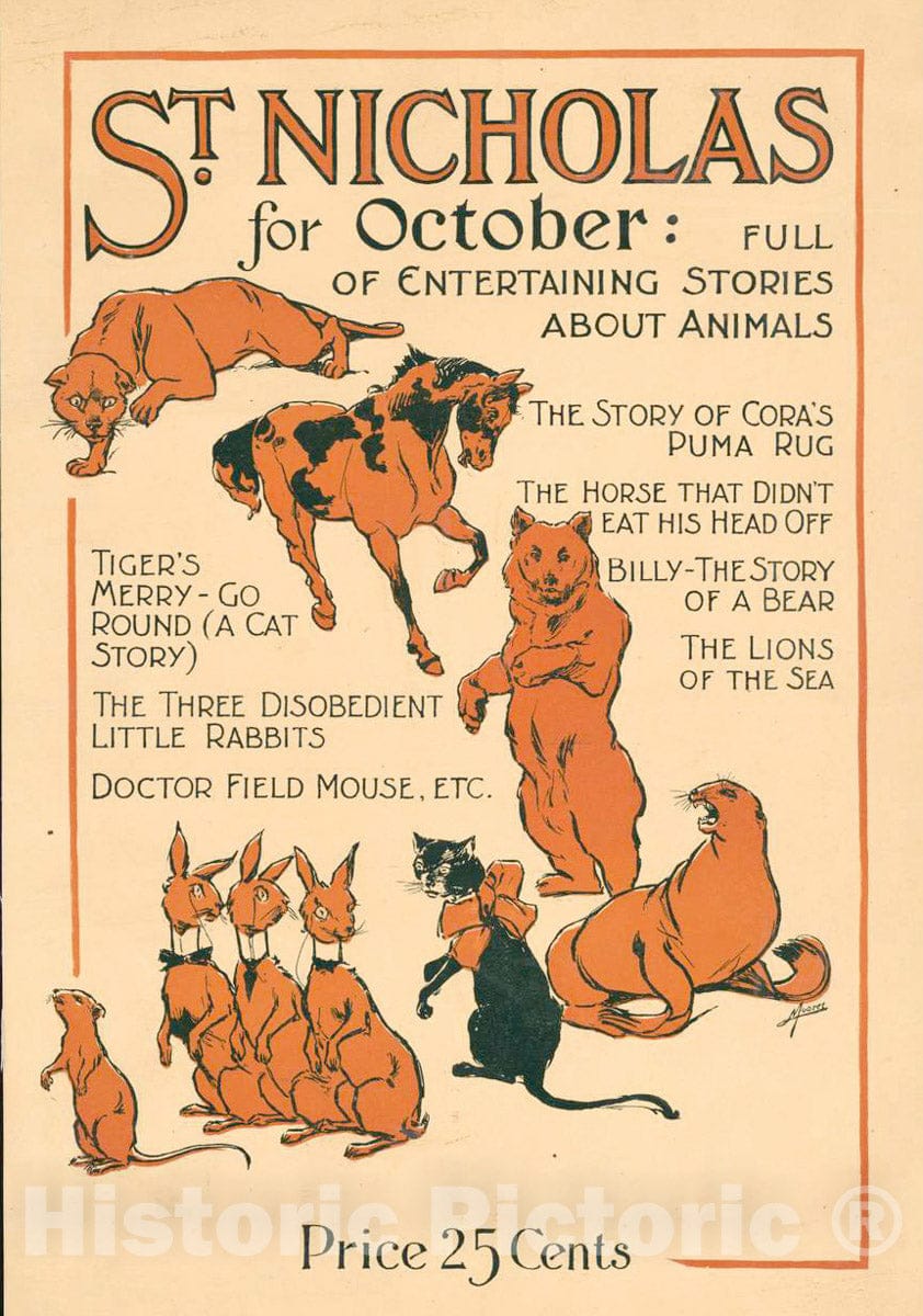 Vintage Poster - St. Nicholas for October, Historic Wall Art