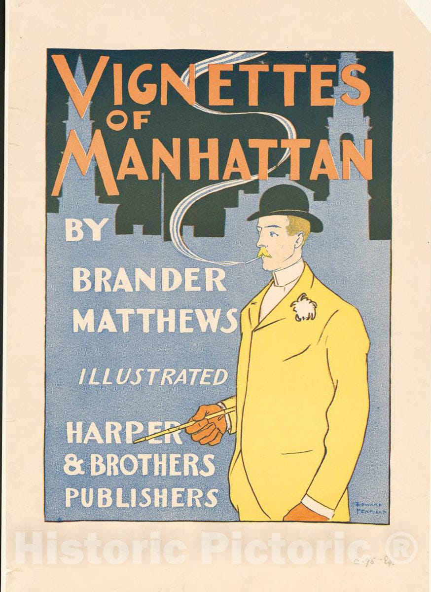 Vintage Poster - Vignettes of Manhattan by Brander Matthews, Illustrated, Historic Wall Art