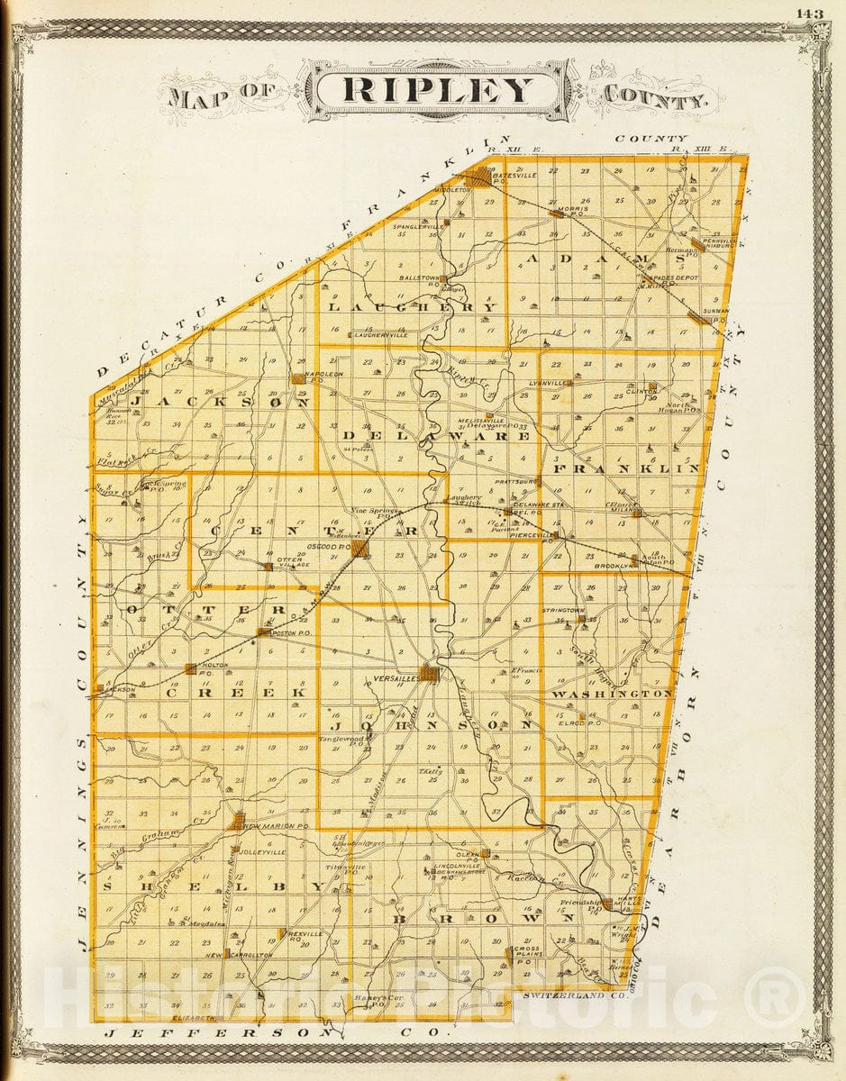 Historic Wall Map : 1876 Map of Ripley County. - Vintage Wall Art