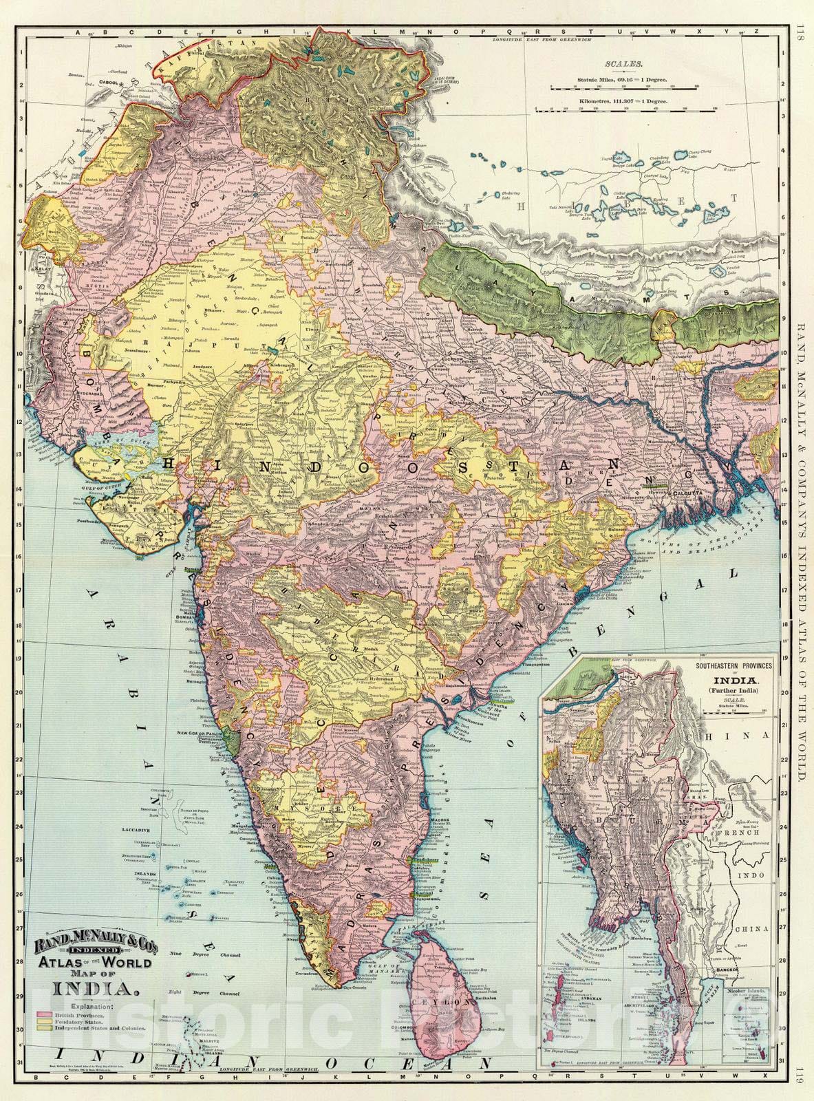 Historic Wall Map : 1897 India, Further India. - Vintage Wall Art