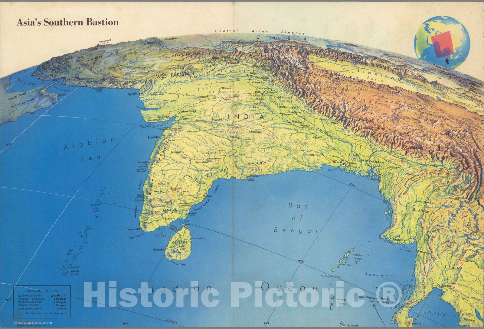 Historic Wall Map : Asia's southern bastion. 1950 - Vintage Wall Art