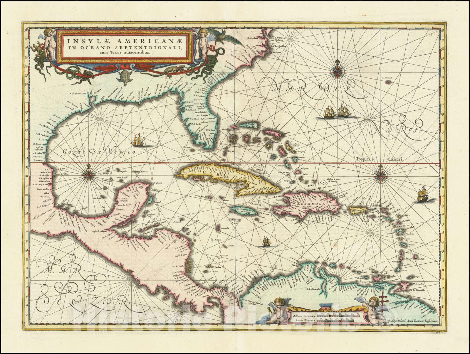 • .Historic Map : Insulae Americanae in Oceano Septentrionali cum Terris adiacentibus, 1635, Vintage Wall Art