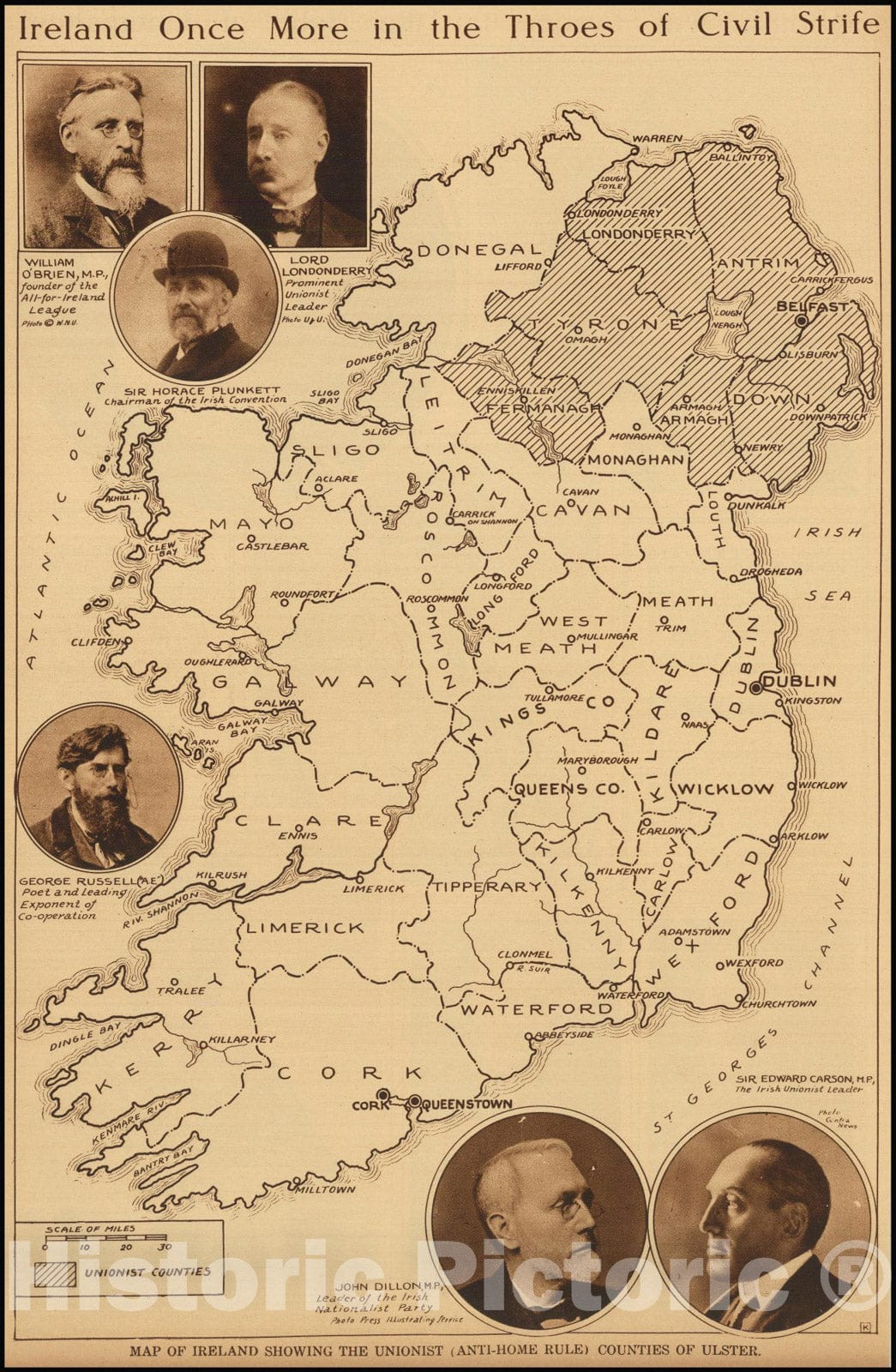 Historic Map : Ireland Once More in the Throes of Civil Strife,Ireland Showing The Unionist , Anti-Home Rule, 1918, Vintage Wall Art