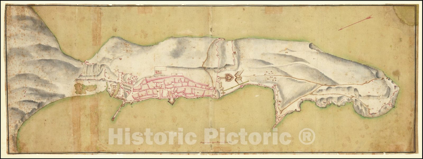 Historic Map : Manuscript Map of Gibraltar, 1730, Vintage Wall Art