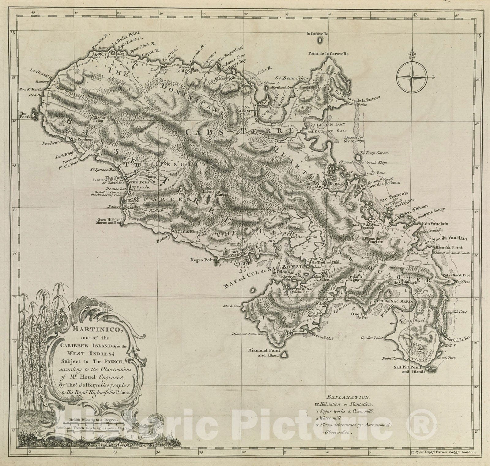 Historical Map, 1768 Martinico, one of The Caribbee Islands in The West Indies : Subject to The French, Vintage Wall Art