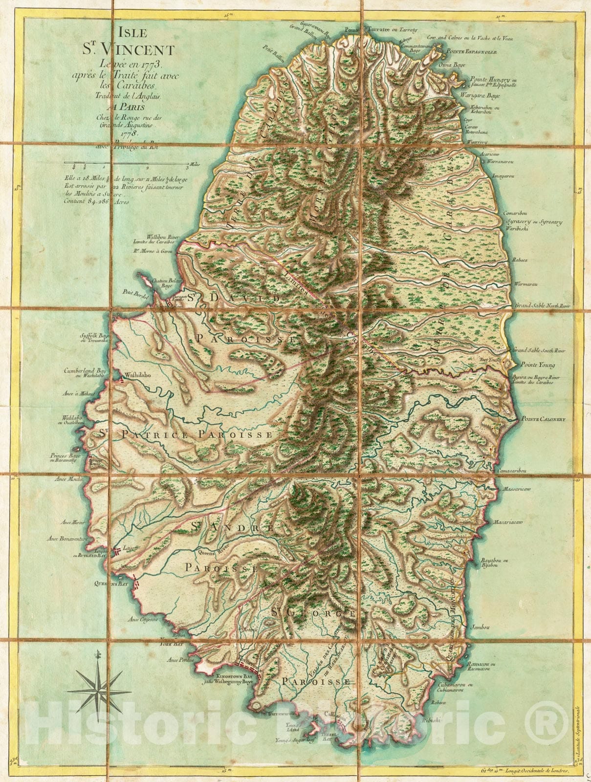 Historical Map, 1778 Isle St. Vincent, Vintage Wall Art