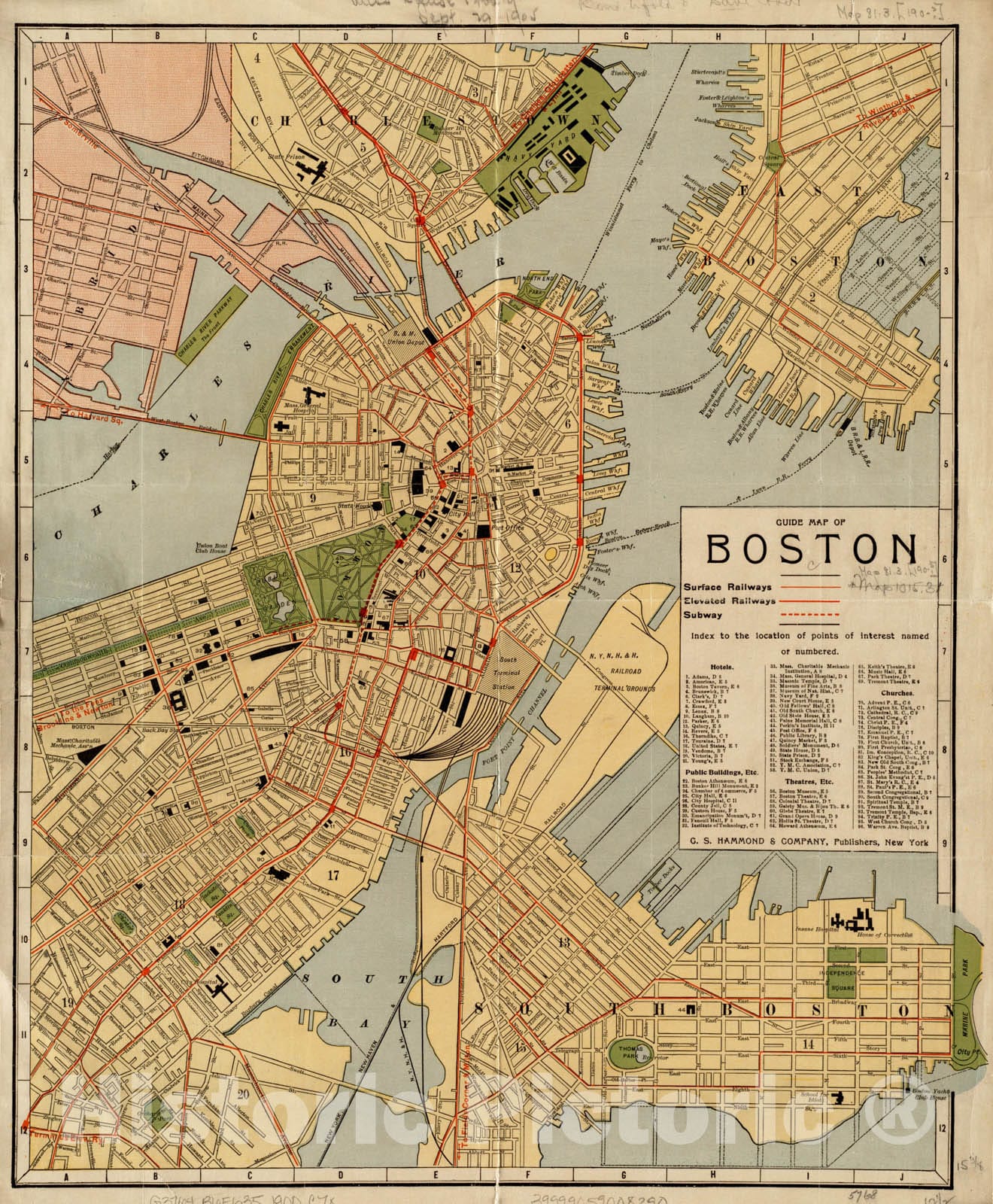 Historical Map, 1900-1905 Guide map of Boston, Vintage Wall Art