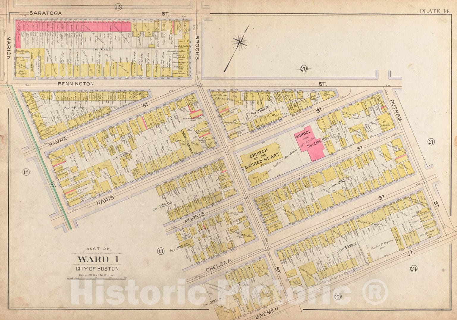 Historical Map, 1901 Atlas of The City of Boston, East Boston : Plate 14, Vintage Wall Art