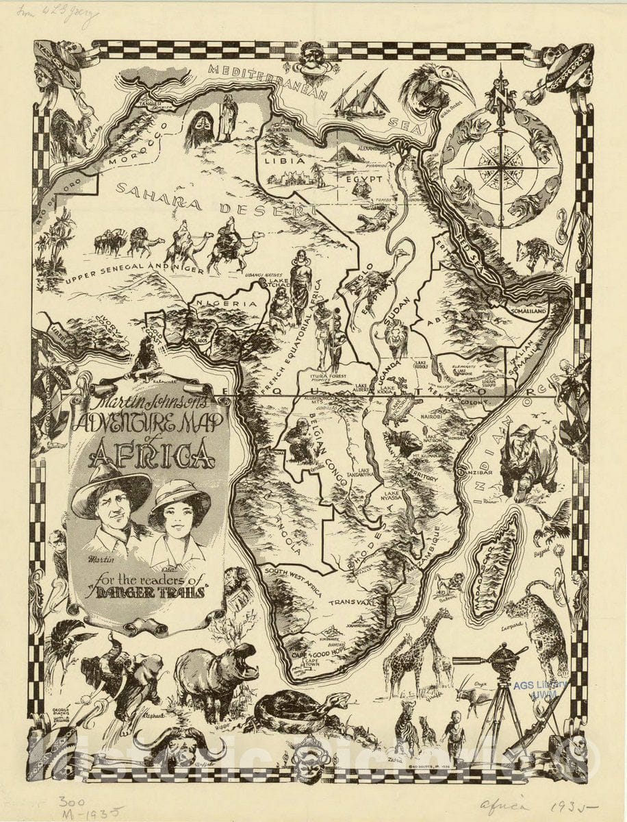 • Map : Africa 1935, Martin Johnson's adventure map of Africa for the readers of Danger Trails , Antique Vintage Reproduction
