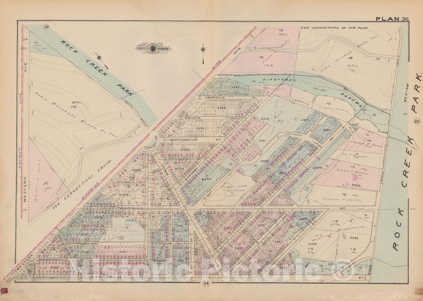 Historic Map : Atlas of Washington D.C. Volume 3 (Outer NW), Washington 1937 Plate 036 , Vintage Wall Art