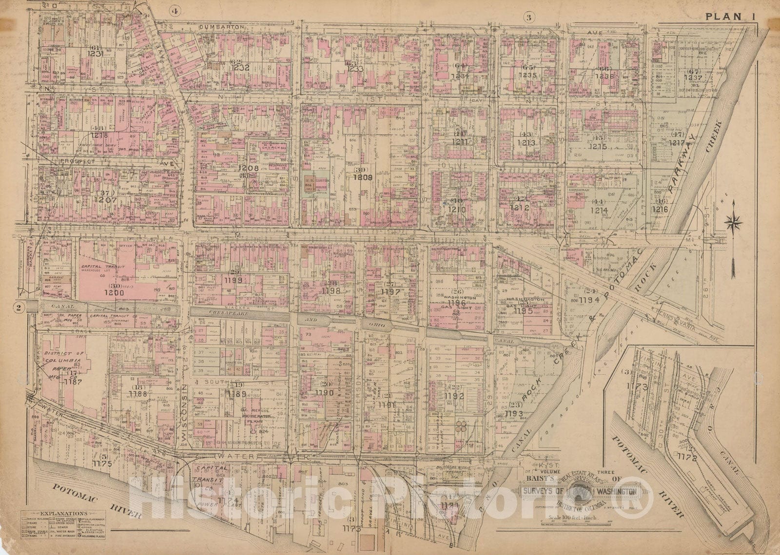 Historic Map : Atlas of Washington D.C. Volume 3 (Outer NW), Georgetown & Washington 1937 Plate 001 , Vintage Wall Art