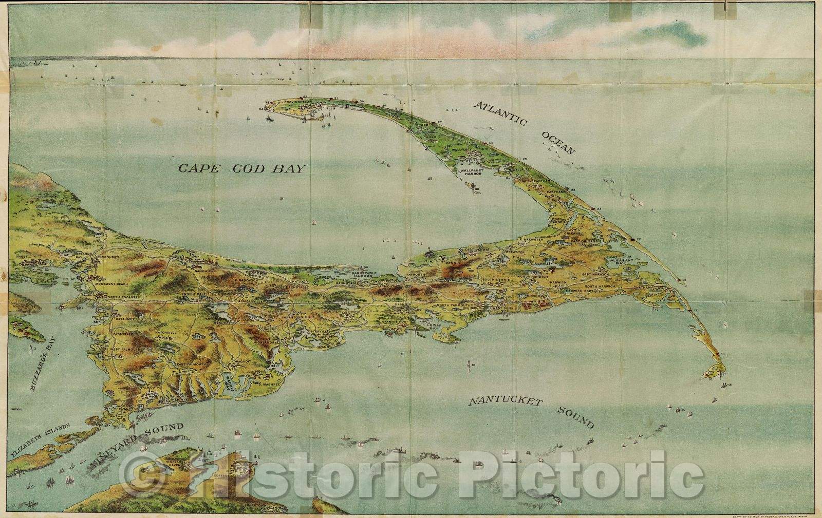 Historic Map : Bird's Eye View of Cape Cod, 1905 , Vintage Wall Art