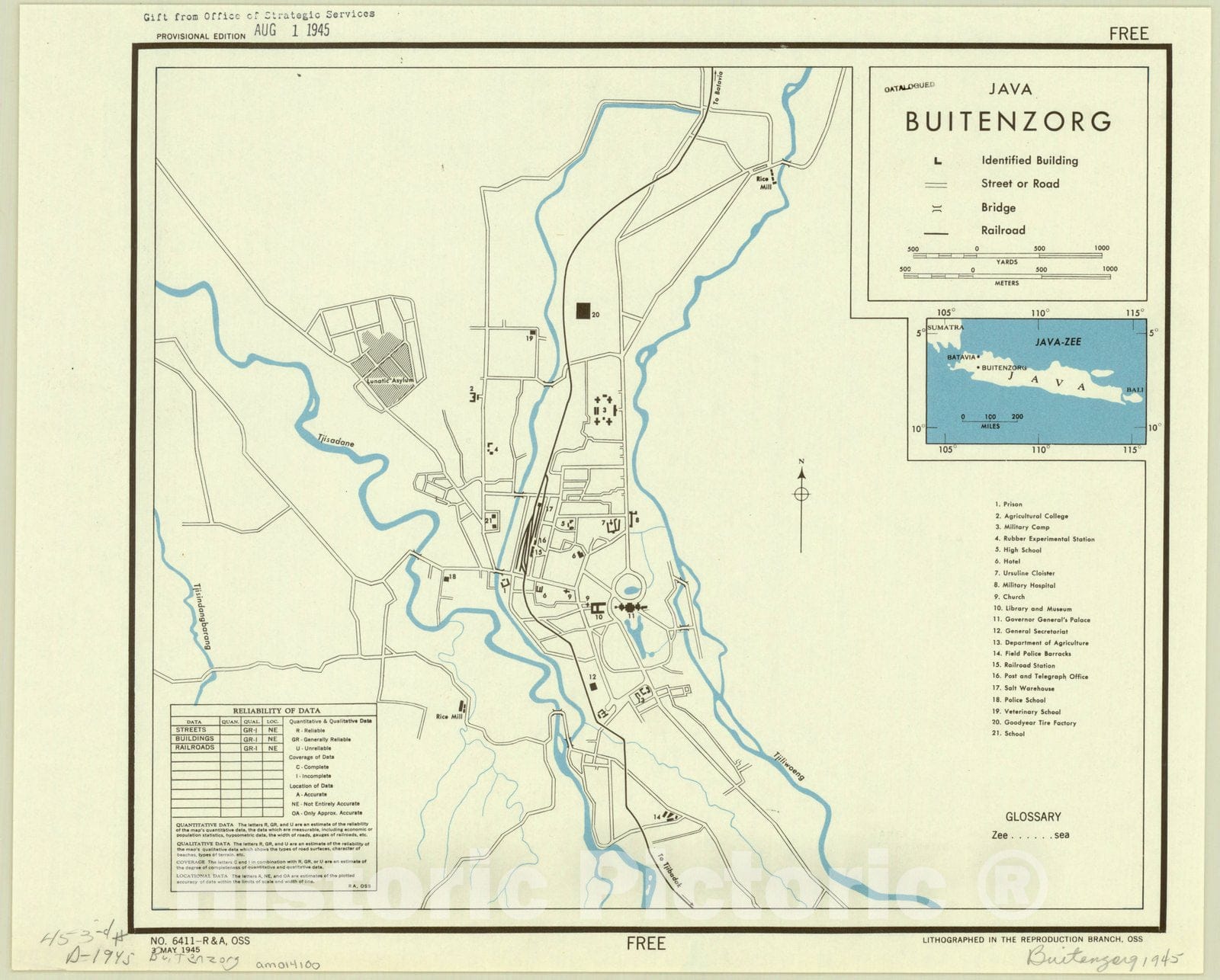 Map : Bogor, Indonesia 1945, Java: Buitenzorg , Antique Vintage Reproduction
