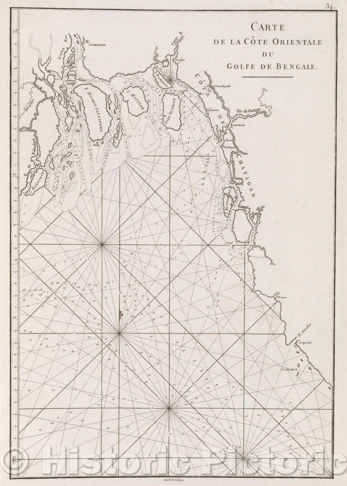 Historic Map : Carte de la cote orientale du Golfe de Bengale., 1775 , Vintage Wall Art