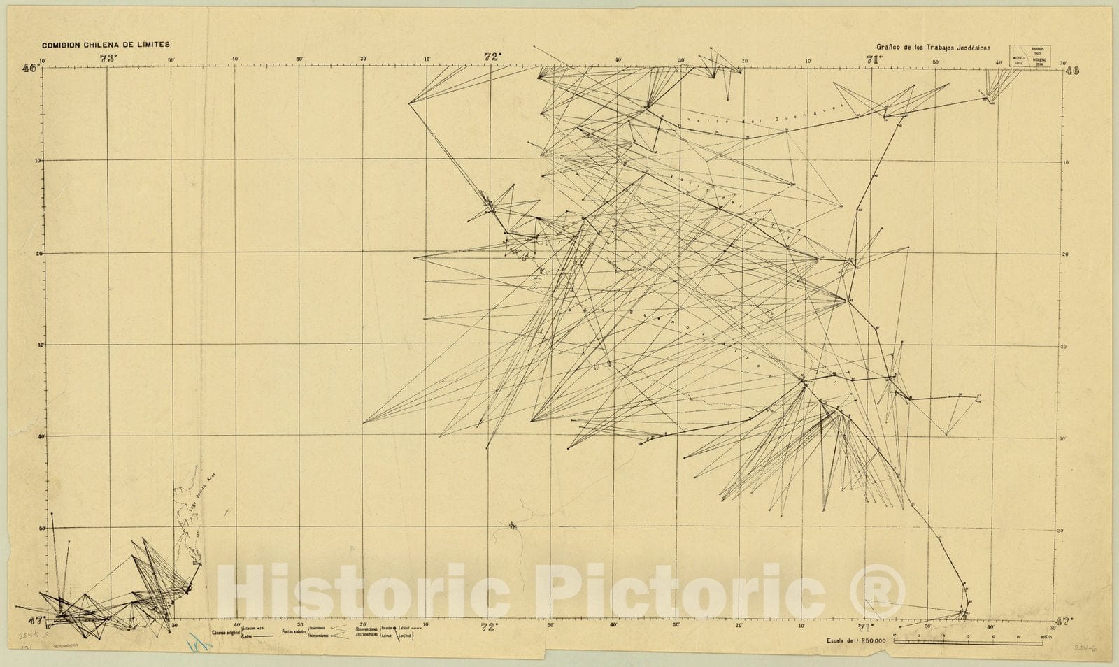 Comision Chilena de Limites Grafico de los Trabajos Jeodesicos Wichell, Barrios, Moreno