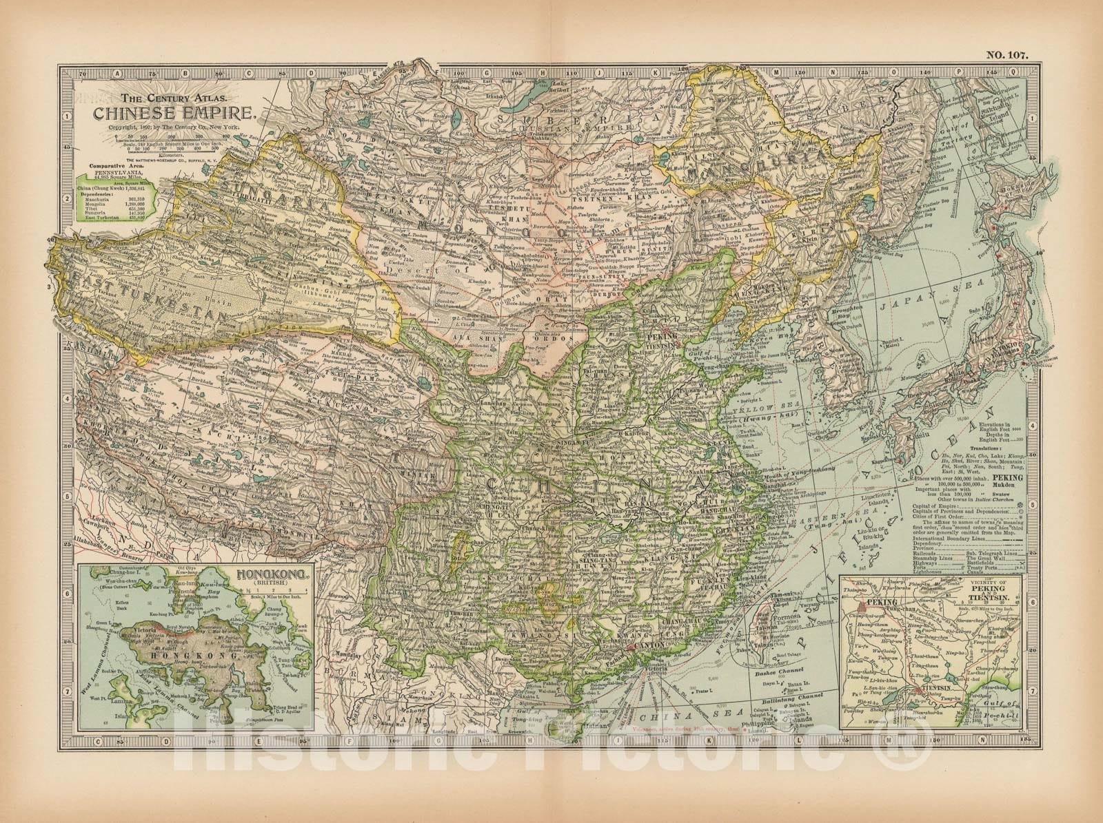 Historic Map : China & Tibet & Hong Kong 1897 , The Century Atlas World , Vintage Wall Art