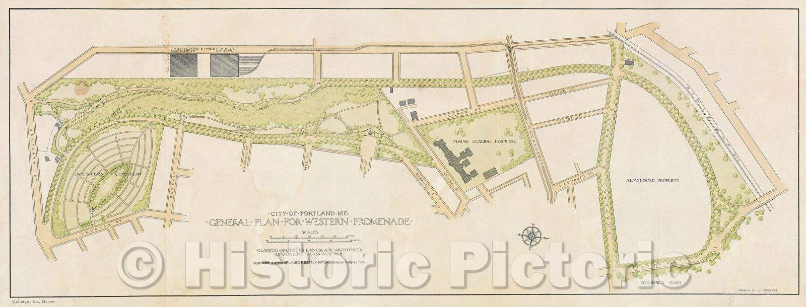 Historic Map : City of Portland Me. General Plan for Western Promenade, 1905 , Vintage Wall Art