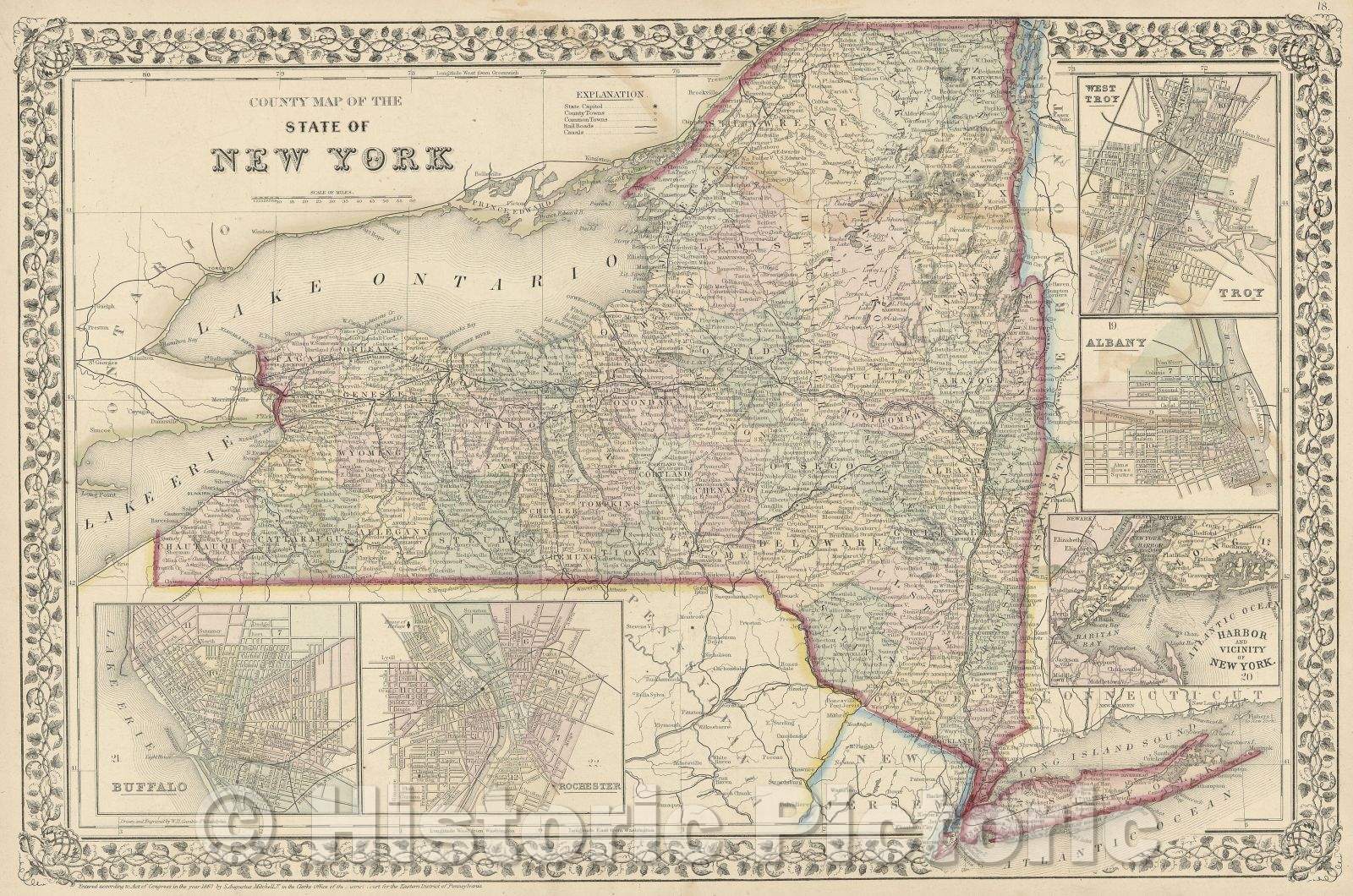 Historic Map : County Map of the State of New York drawn and engraved by W.H. Gamble, 1867 , Vintage Wall Art