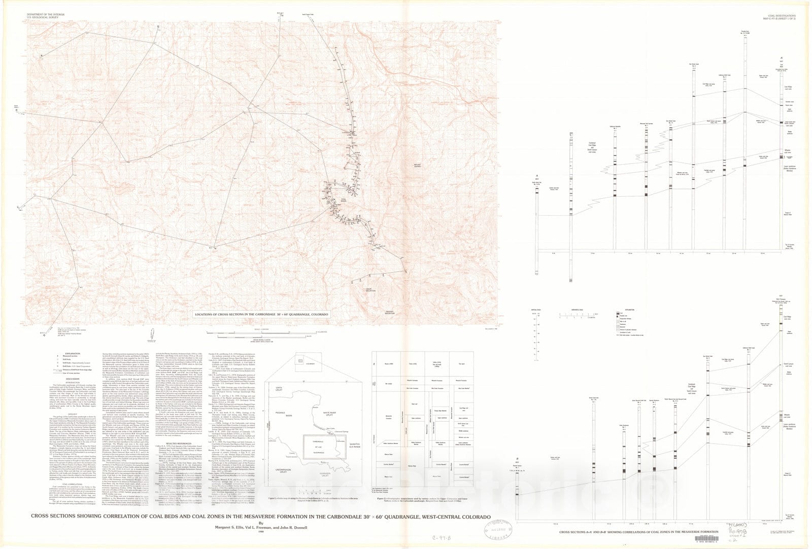 Map : Cross sections showing correlation of coal beds and coal zones in the Carbondale 30' x 60' quadrangle, west-central Colorado, 1988 Cartography Wall Art :
