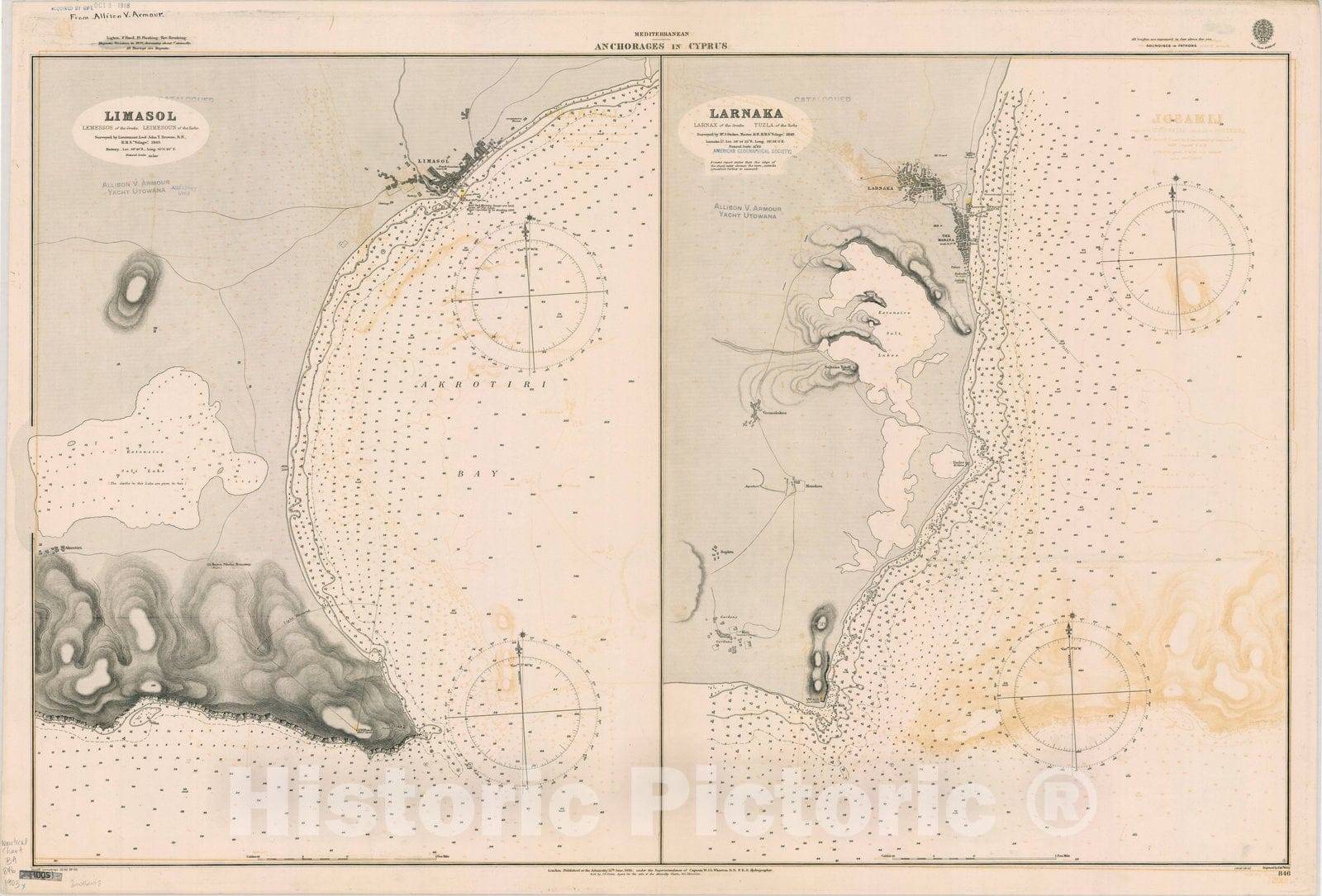 Map : Cyprus 1903, Mediterranean : anchorages in Cyprus , Antique Vintage Reproduction