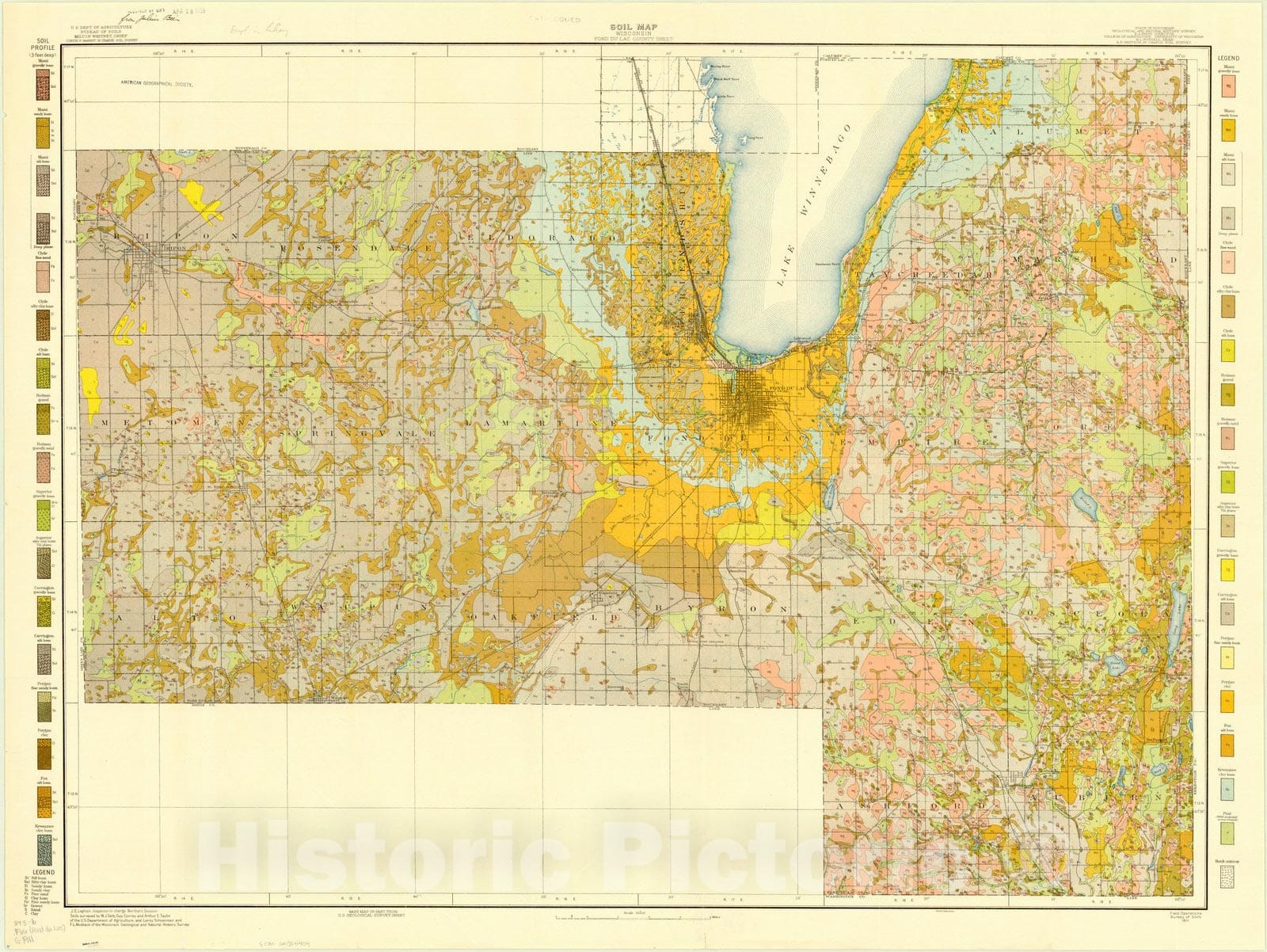 Map : Fond du Lac county, Wisconsin 1911, Soil map, Wisconsin, Fond du Lac County sheet , Antique Vintage Reproduction