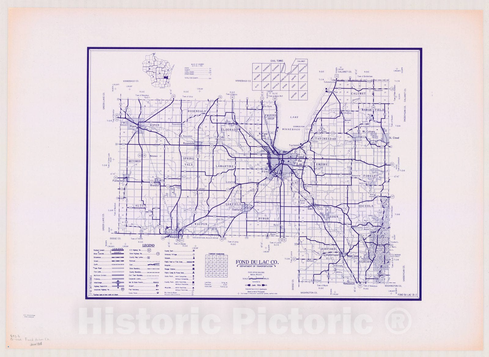 Map : Fond du Lac County, Wisconsin 1984, [Wisconsin county transportation maps] , Antique Vintage Reproduction