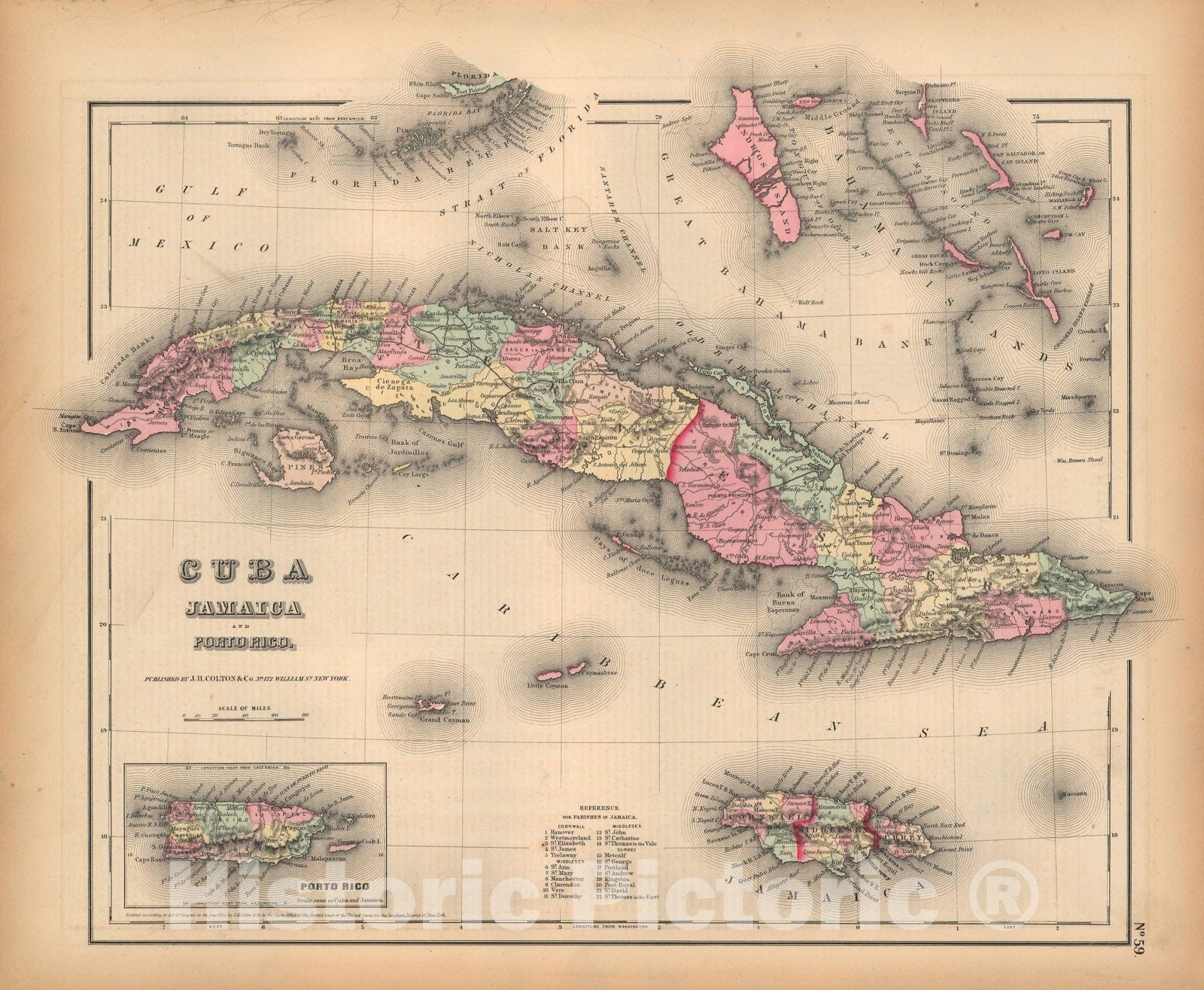 Historic Map : General Atlas (Of The World), Cuba & Jamaica 1857 , Vintage Wall Art