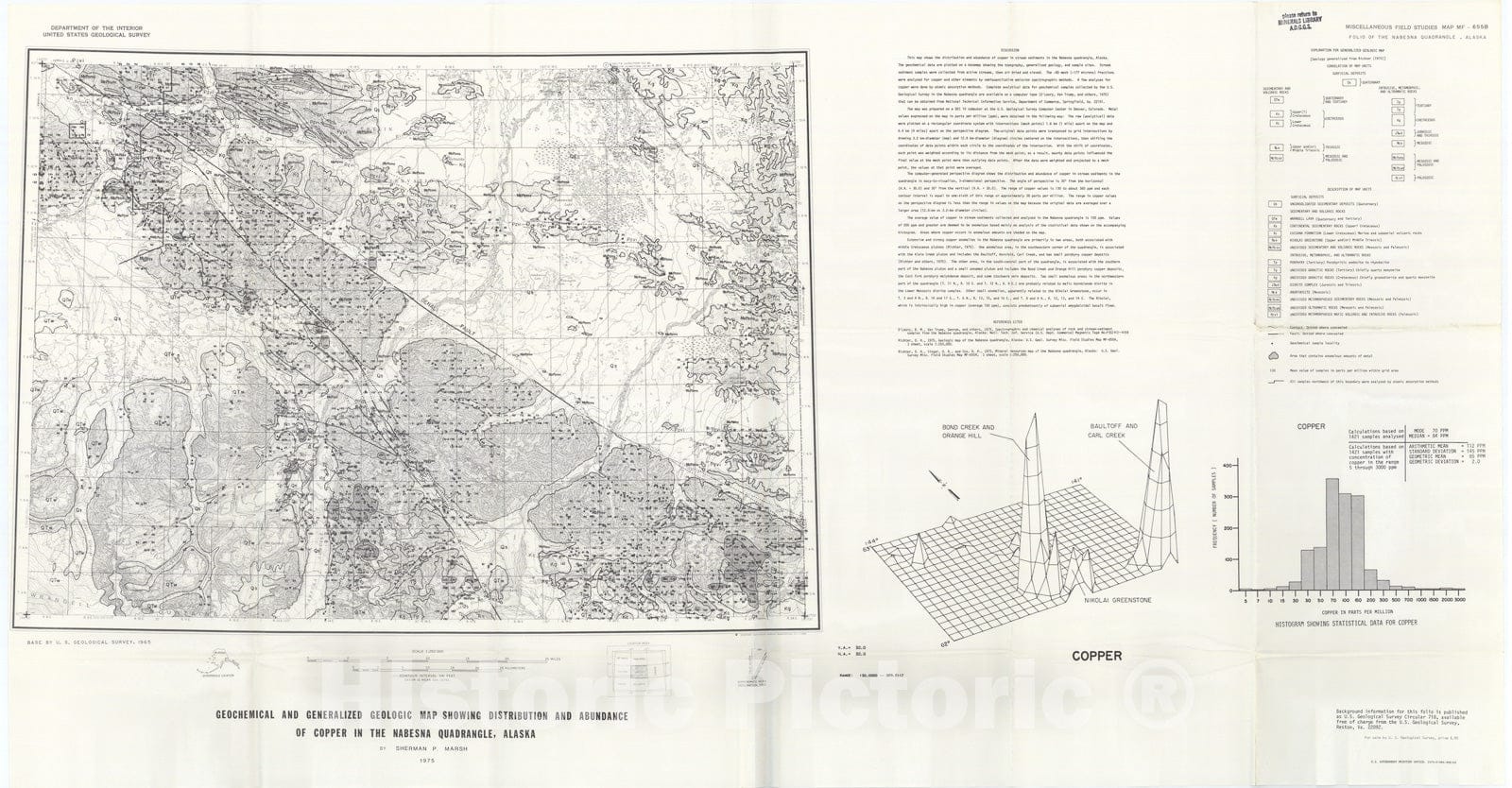 Map : Geochemical and generalized geologic map showing distribution and abundance of copper in the Nabesna quadrangle, Alaska, 1975 Cartography Wall Art :